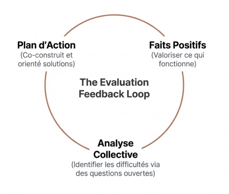 Un entretien d'évaluation motivant commence par valoriser ce qui fonctionne avant d'aborder les axes d'amélioration. La structure recommandée : faits positifs, analyse collective des difficultés, plan d'action concret et co-construit. Posez des questions ouvertes ("Qu'aurais-tu fait différemment ?") plutôt que des reproches. L'approche orientée solutions, et non sur les erreurs passées, transforme l'évaluation en tremplin plutôt qu'en épreuve redoutée.