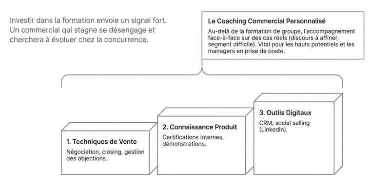 Investir dans la formation, c'est envoyer un signal fort : l'entreprise croit en ses commerciaux. Ce sentiment de progression est un puissant moteur de motivation intrinsèque. À l'inverse, un commercial qui stagne dans ses compétences pendant des années se désengage et cherche souvent à évoluer ailleurs.